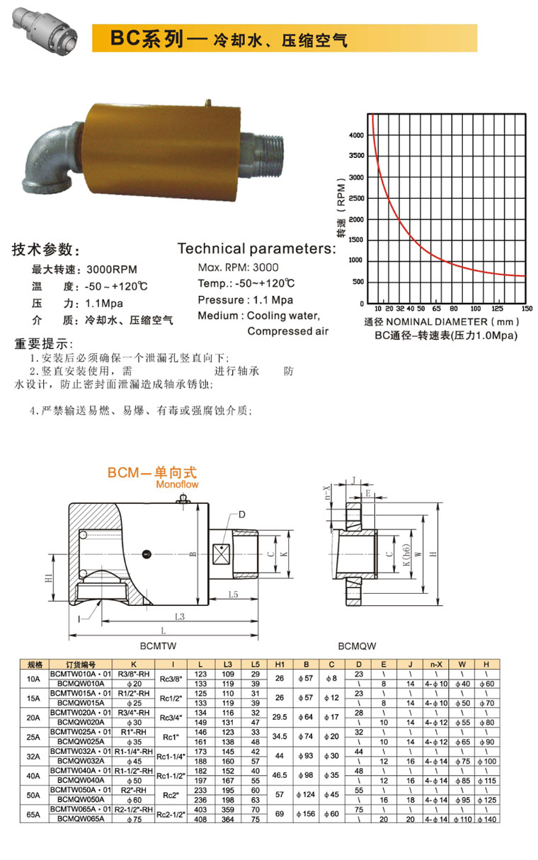BC系列-冷卻水、壓縮空氣液滑環選型